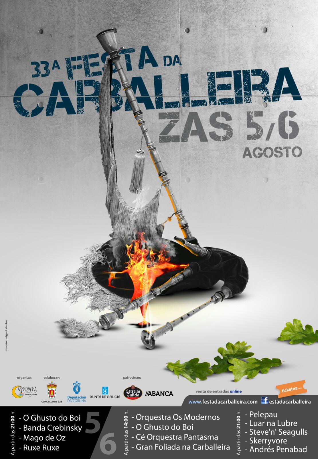 Outra cita de pago pero tamén outro clásico festivaleiro é a Carballeira de Zas. Moi semellante na proposta a Pardiñas, isto é, contorna fabulosa e festival popular baseado no folk, até a carballeira este ano irán Banda Crebinsky –que como vedes fai dobrete Zas/Pardiñas, veremos como é a súa proposta despois da incorporación de Serxio Zearreta-, Ruxe Ruxe, Pelepau, Andrés Penabad ou os clásicos –na carballeira- Luar na Lubre. De fóra, Mago de Oz –que na nosa opinión desentoan nun cartaz de moitísima calidade- ou Steve ‘N’ Seagulls, fenómeno viral nas redes coas súas versións countries de AC/DC.